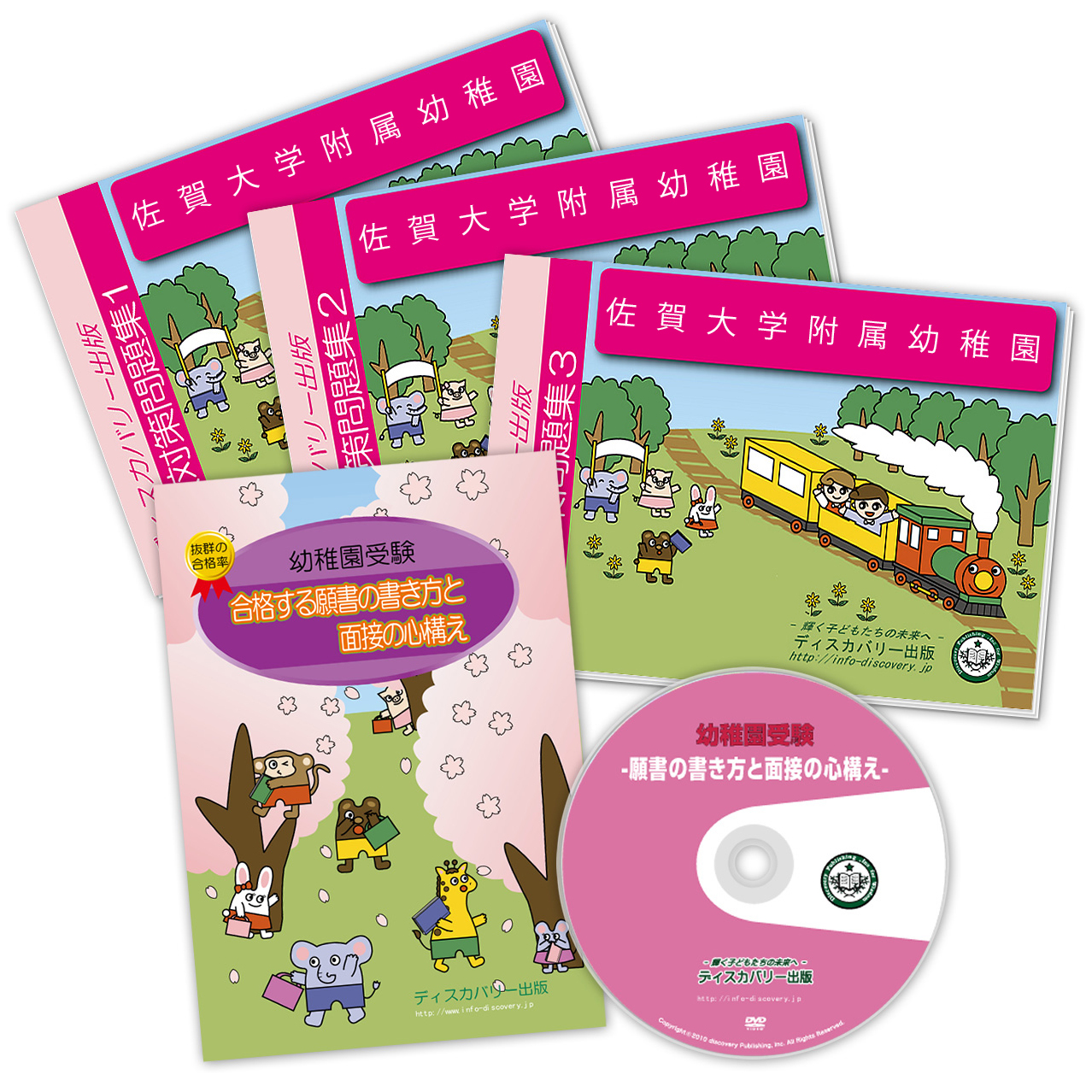 佐賀大学附属幼稚園受験対策として体系的にまとめた「合格セット」と、学習の効果をさらに高める「補助教材セット」が含まれています。